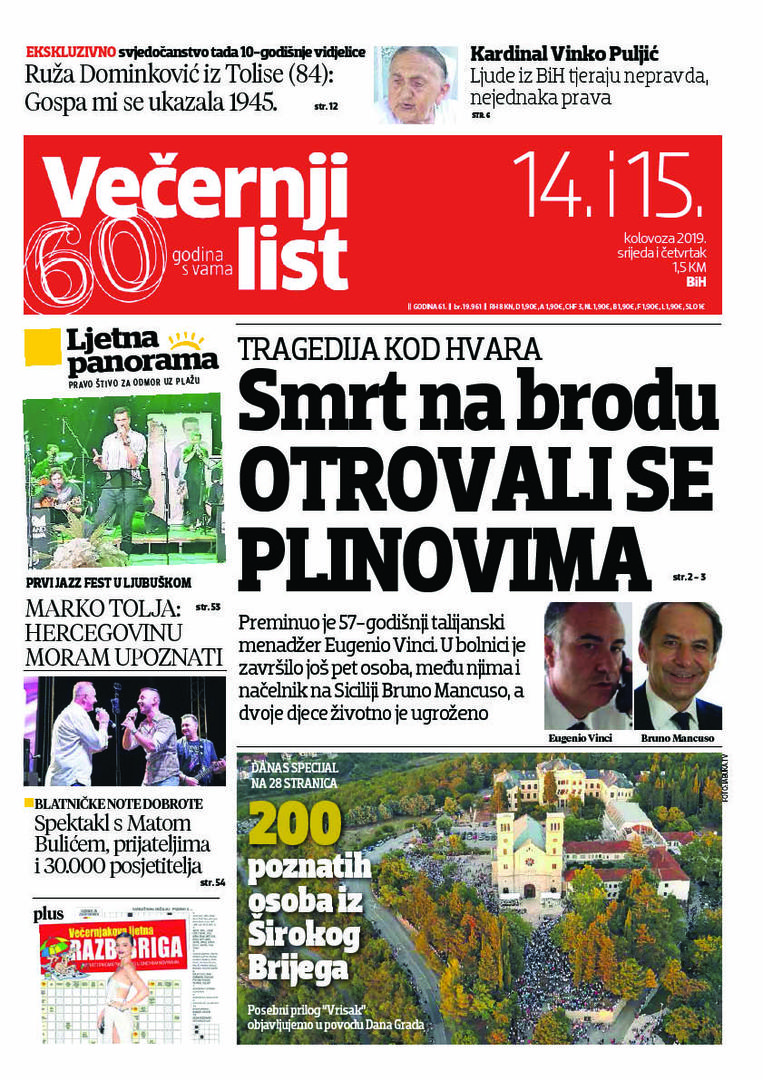 U dvobroju Večernjeg lista BiH u tiskanom izdanju 14. i 15. kolovoza 2019. godine čitajte:
