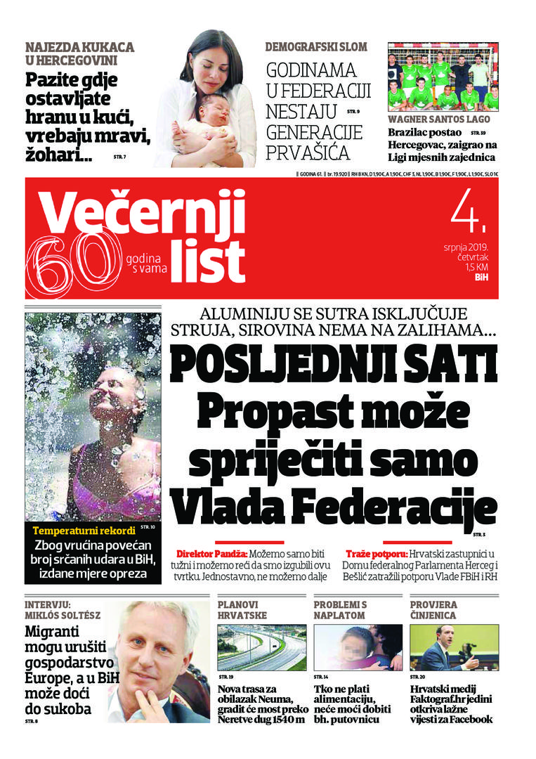 U Večernjem listu BiH u tiskanom izdanju u četvrtak, 4. srpnja 2019. godine čitajte: