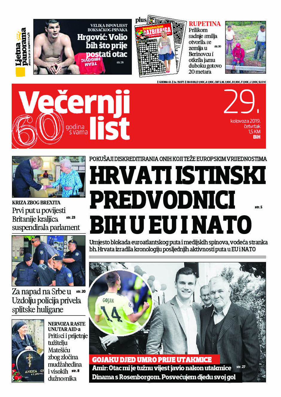 U Večernjem listu BiH u tiskanom izdanju u četvrtak, 29. kolovoza 2019. godine čitajte: