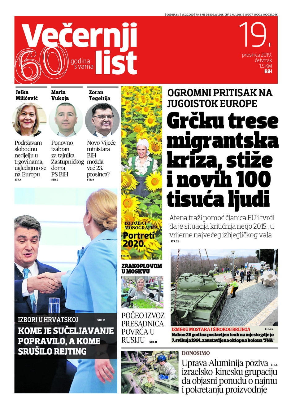 U Večernjem listu BiH u tiskanom izdanju u četvrtak 19. prosinca 2019. godine pročitajte: