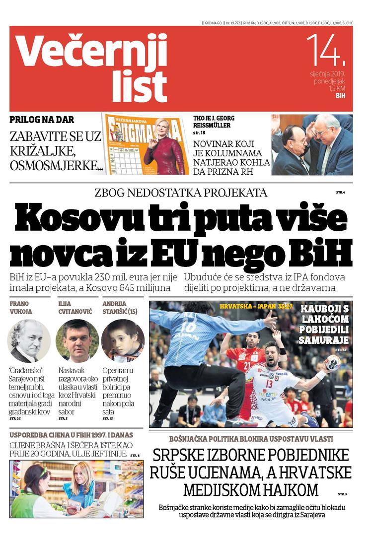 U Večernjem listu BiH u tiskanom izdanju u ponedjeljak, 14. siječnja 2019. godine čitajte: