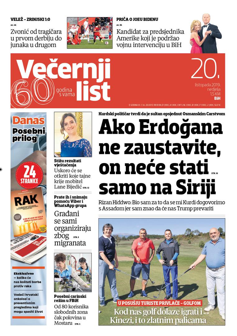 U Večernjem listu BiH u tiskanom izdanju u nedjelju, 20. listopada 2019. godine čitajte: