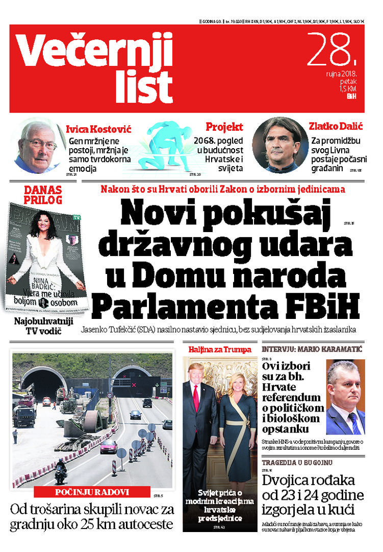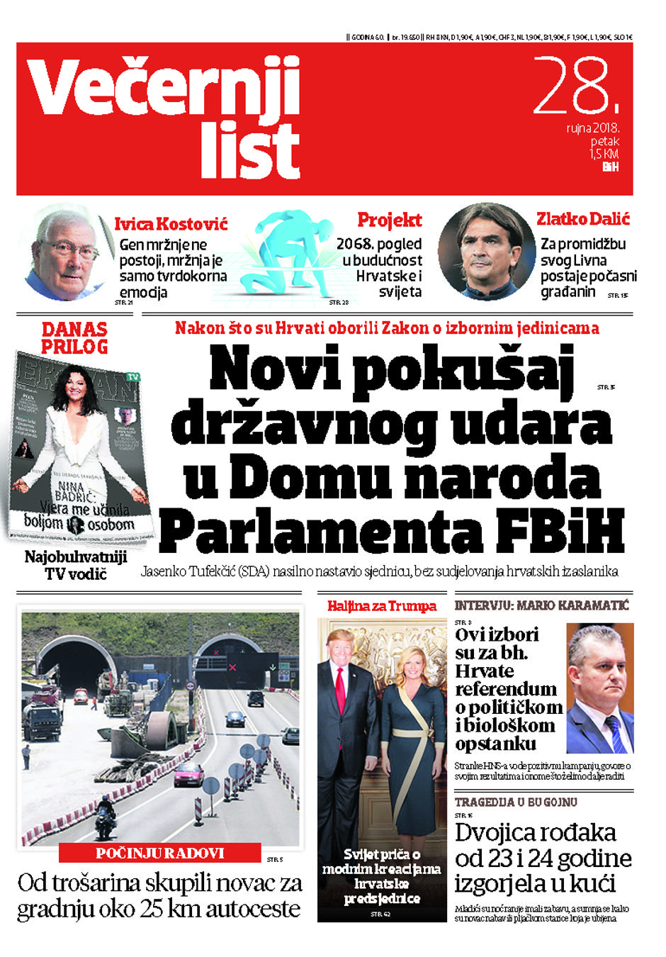 U Večernjem listu BiH u tiskanom izdanju u petak, 28. rujna 2018. godine čitajte: