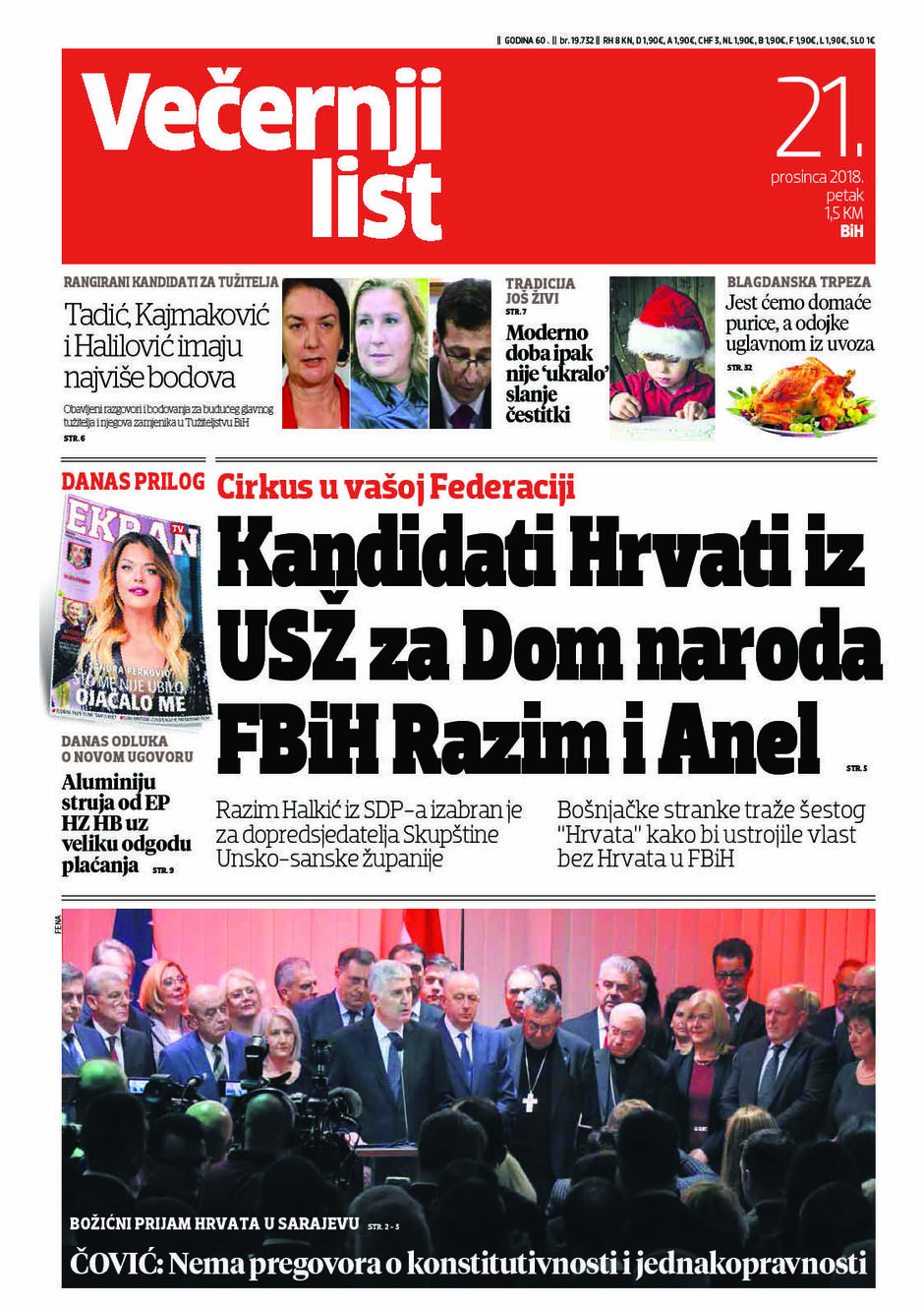 U Večernjem listu BiH u tiskanom izdanju u petak, 21. prosinca 2018. godine čitajte: