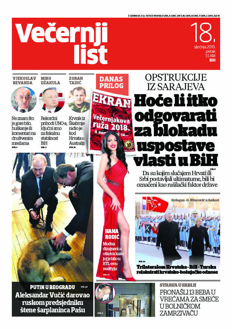 U Večernjem listu BiH u tiskanom izdanju u petak, 18. siječnja 2019. godine čitajte: