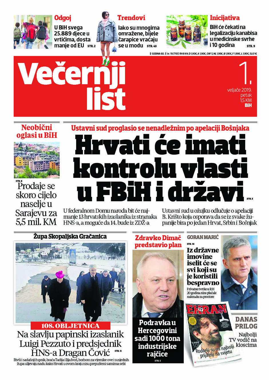 U Večernjem listu BiH u tiskanom izdanju u petak, 1. veljače 2019. godine čitajte: