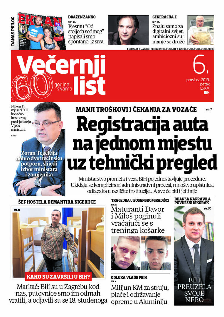 U Večernjem listu BiH u tiskanom izdanju u petak 6. prosinca 2019. godine pročitajte: