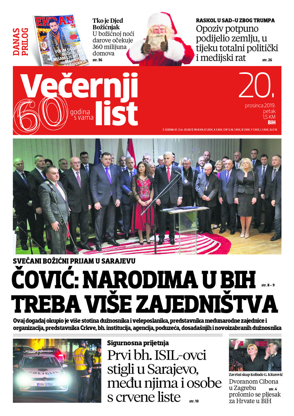 U Večernjem listu BiH u tiskanom izdanju u petak 20. prosinca 2019. godine pročitajte: