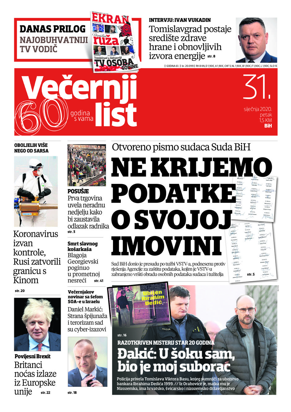 U Večernjem listu BiH u tiskanom izdanju u petak 31. siječnja 2020. godine pročitajte: