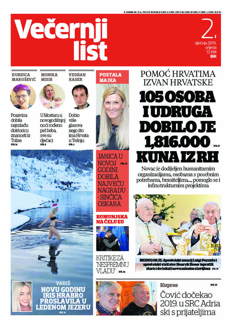 U Večernjem listu BiH u tiskanom izdanju u srijeda , 02. siječnja 2019. godine čitajte: