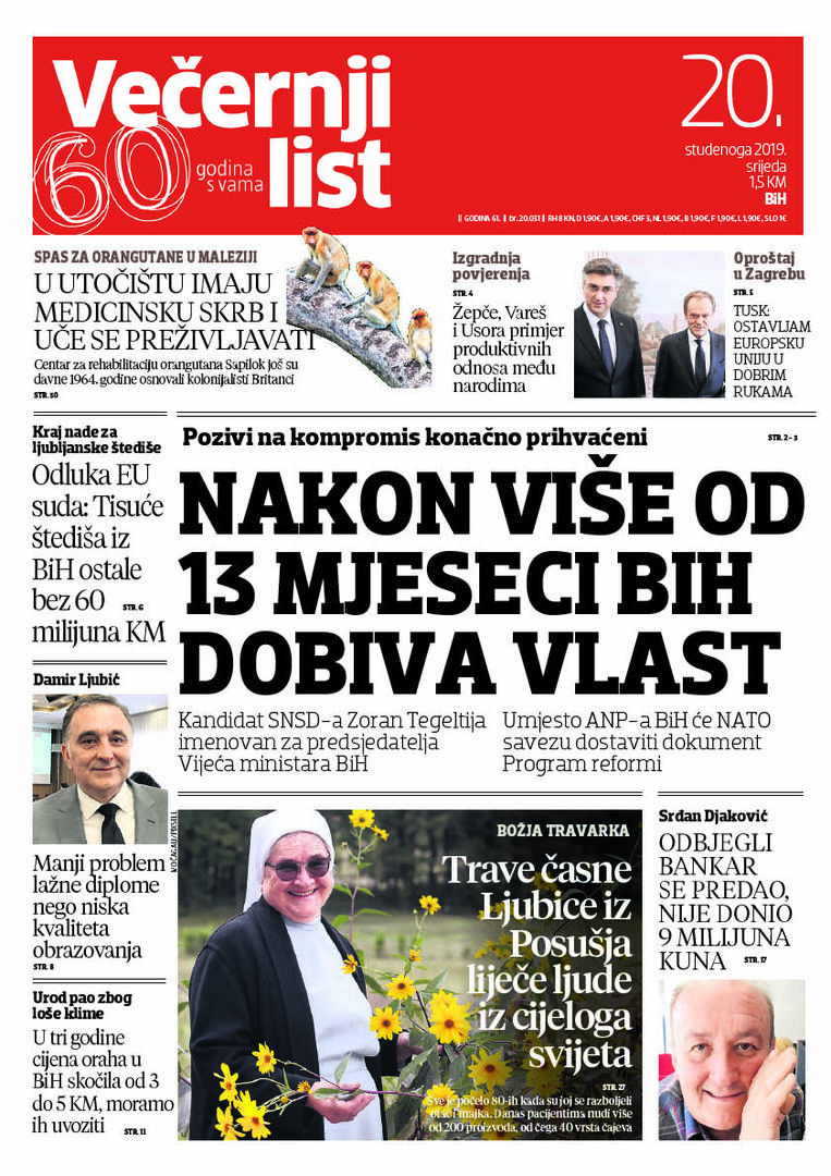 U Večernjem listu BiH u tiskanom izdanju u srijedu 20. studenog 2019. godine pročitajte:
