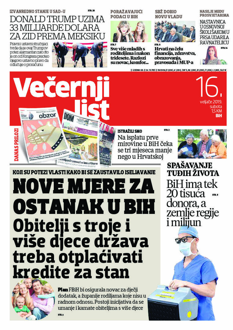 U Večernjem listu BiH u tiskanom izdanju u subotu, 16. veljače 2019. godine čitajte: