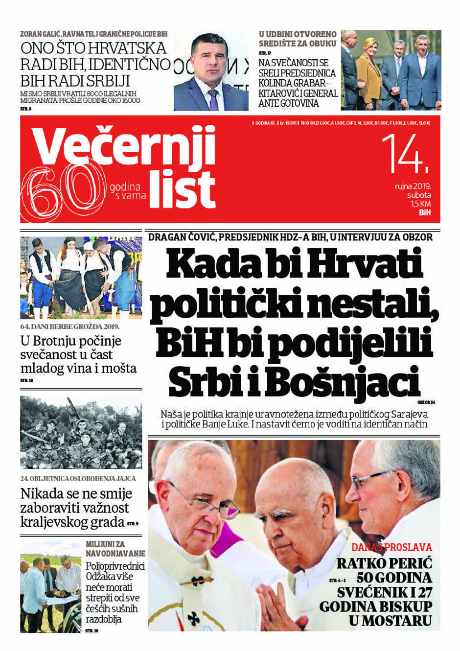 U Večernjem listu BiH u tiskanom izdanju u subotu, 14. rujna 2019. godine čitajte: