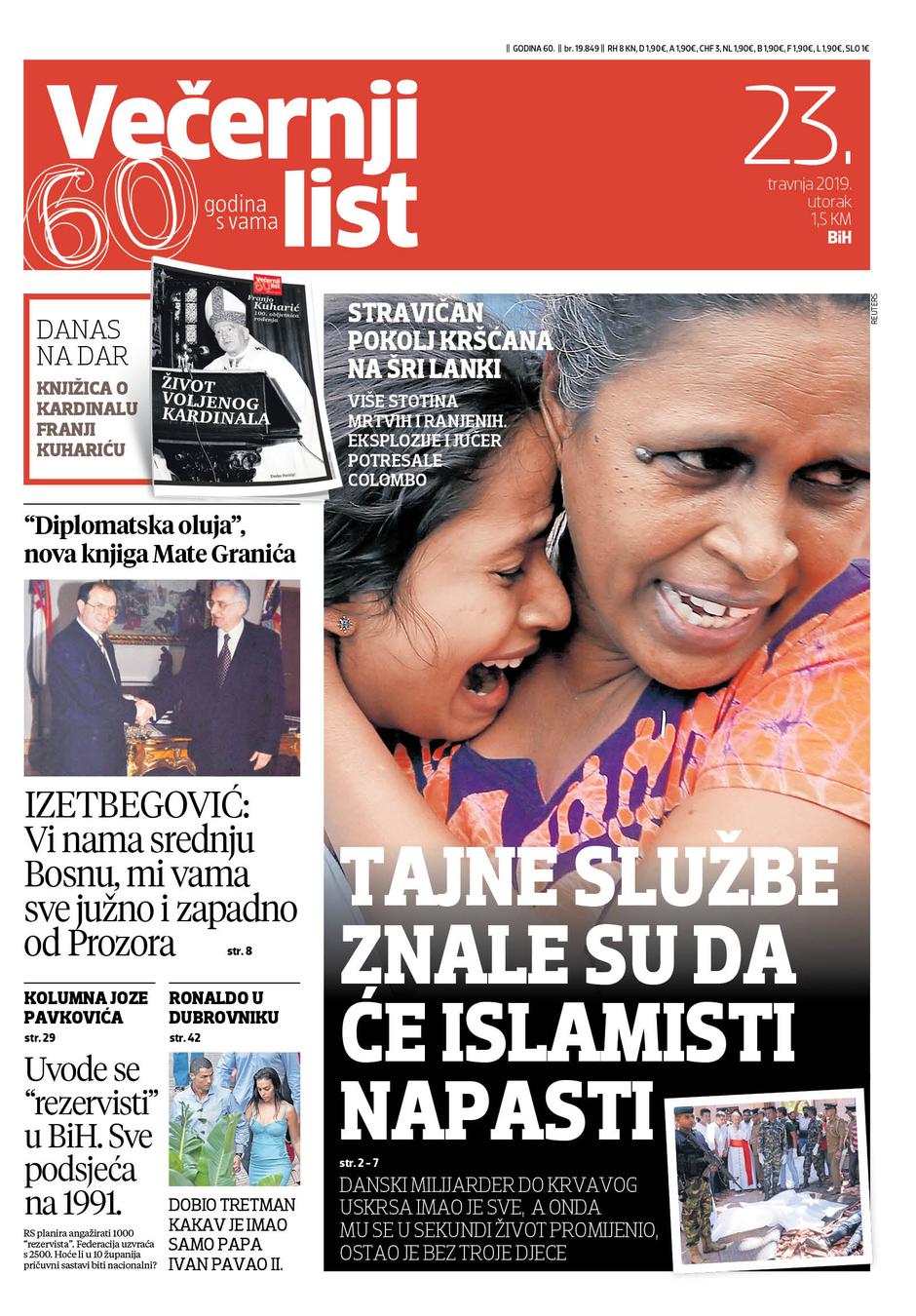 U Večernjem listu BiH u tiskanom izdanju u utorak, 23. travnja 2019. godine čitajte: