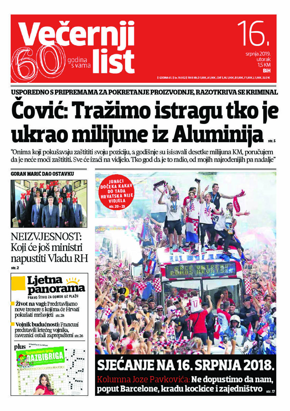 U Večernjem listu BiH u tiskanom izdanju u utorak, 16. srpnja 2019. godine čitajte: