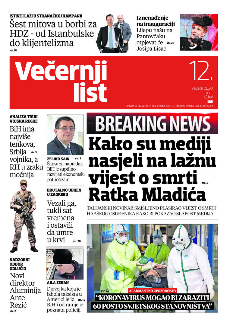 U Večernjem listu BiH u tiskanom izdanju u srijedu 12. veljače 2020. godine pročitajte: