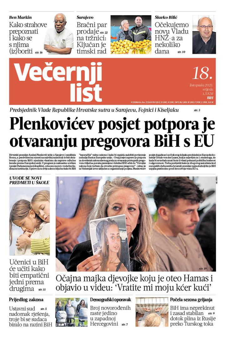 Pročitajte što vam ove srijede donosi Večernji list BiH
