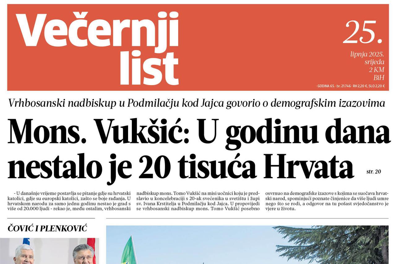 - Nadbiskup Tomo Vukšić u Podmilačju: Za samo godinu dana u hrvatskome je narodu nestao grad s više od 20.000 ljudi