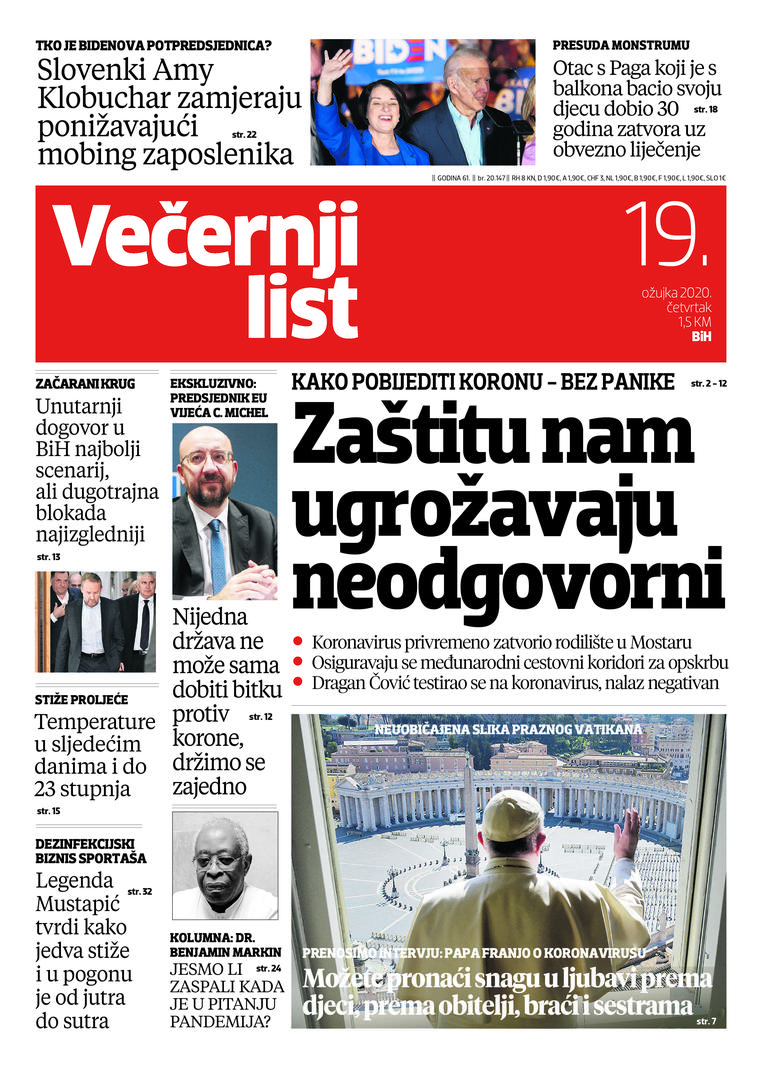 U Večernjem listu BiH u tiskanom izdanju u četvrtak, 19. ožujka 2020. godine pročitajte: