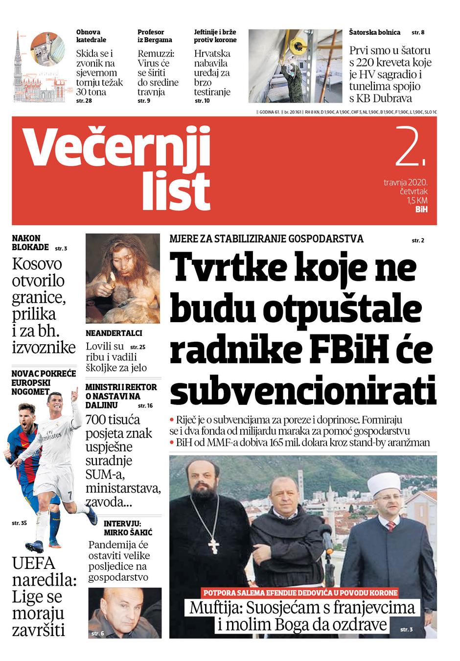 U Večernjem listu BiH u tiskanom izdanju u četvrtak, 02. travnja 2020. godine pročitajte: