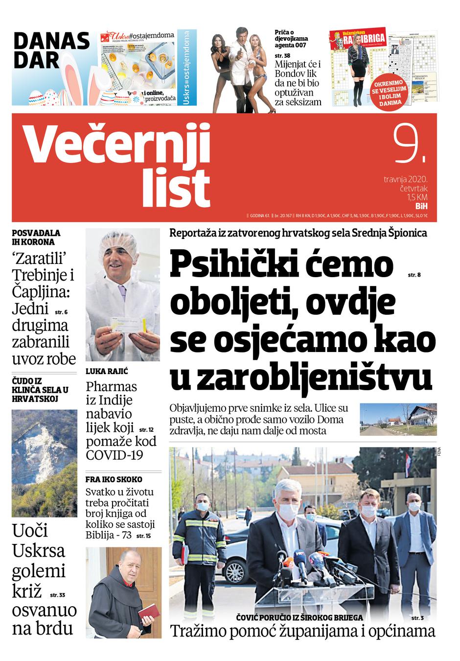 U Večernjem listu BiH u tiskanom izdanju u četvrtak, 9. travnja 2020. godine pročitajte: