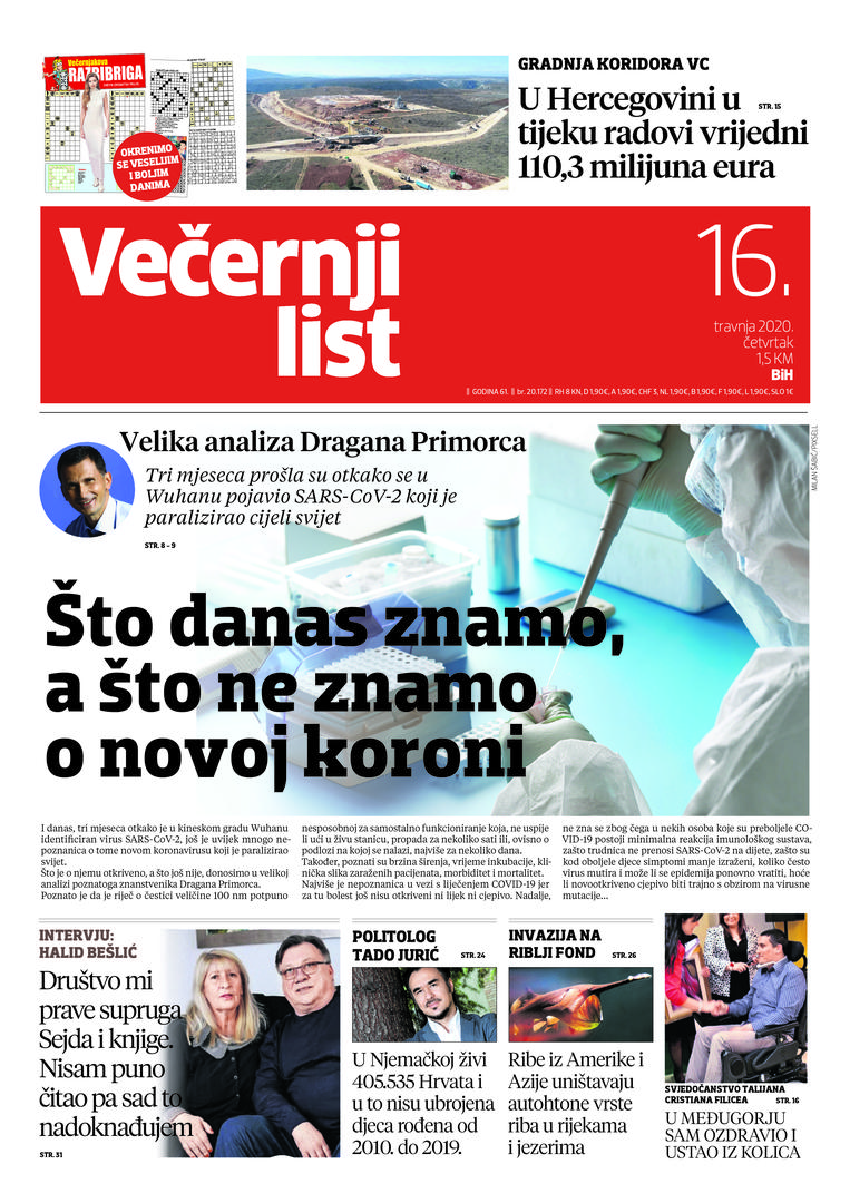 U Večernjem listu BiH u tiskanom izdanju u četvrtak, 16. travnja 2020. godine pročitajte: