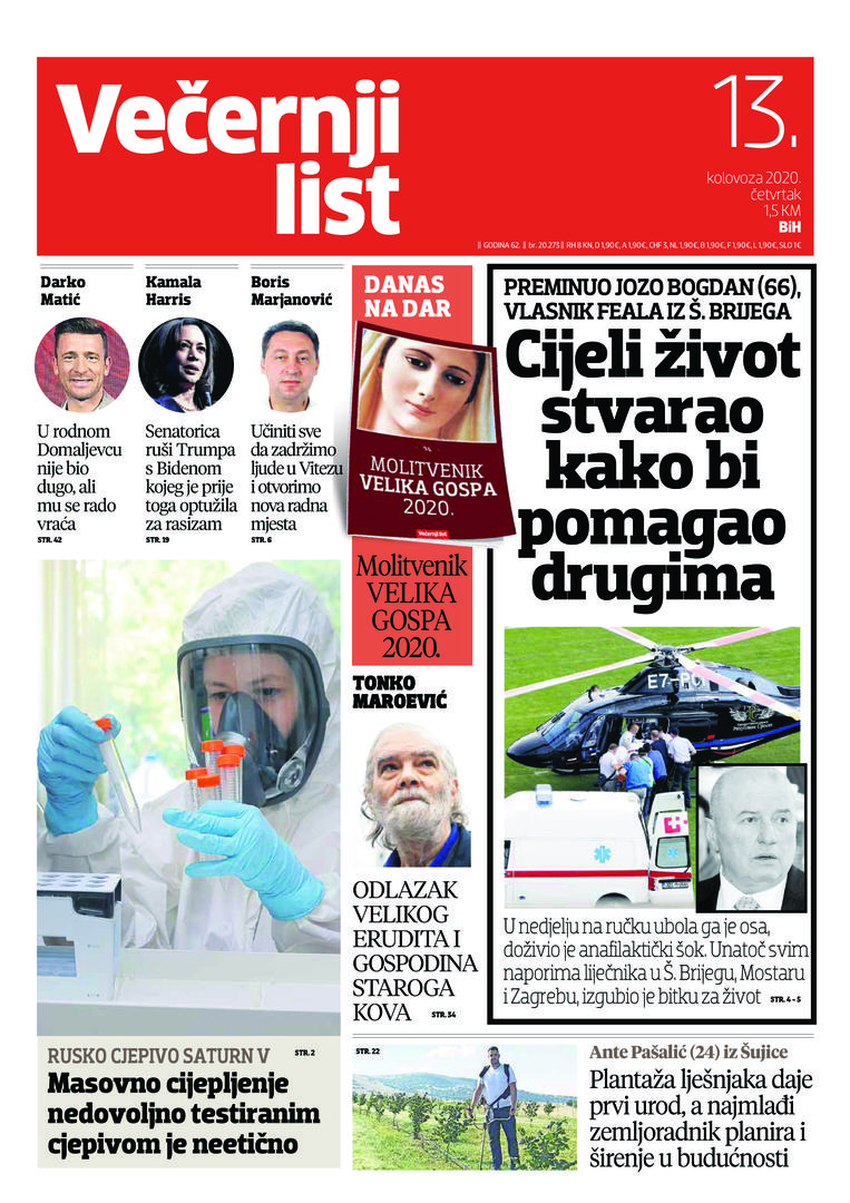 U Večernjem listu BiH u tiskanom izdanju u četvrtak, 13. kolovoza 2020. godine pročitajte: