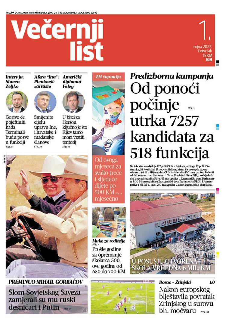 U Večernjem listu BiH u tiskanom izdanju u četvrtak, 1. rujna 2022. godine pročitajte: