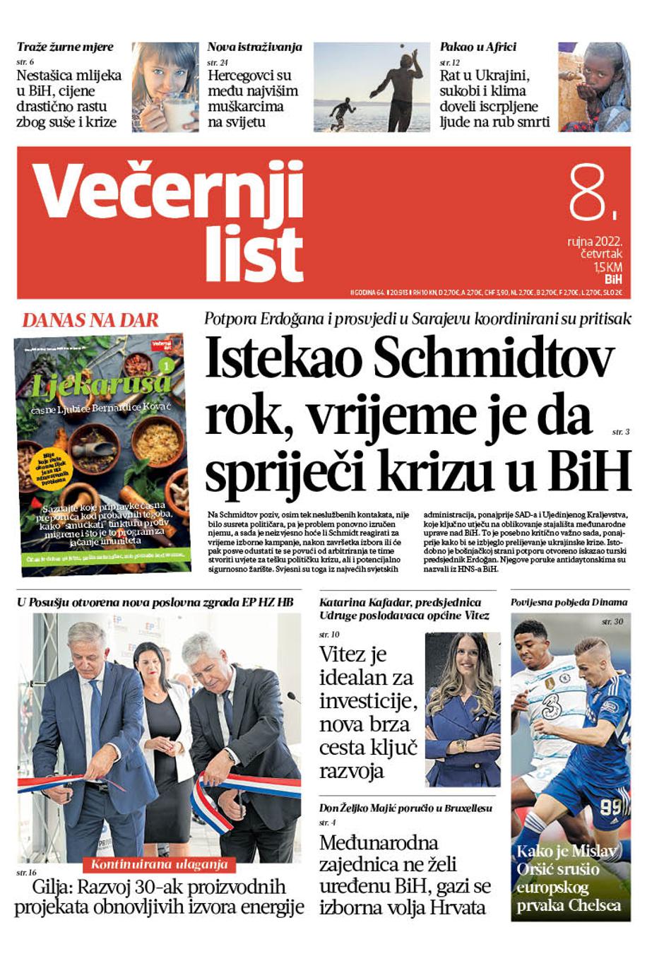 U Večernjem listu BiH u tiskanom izdanju u četvrtak, 8. rujna  2022. godine pročitajte: