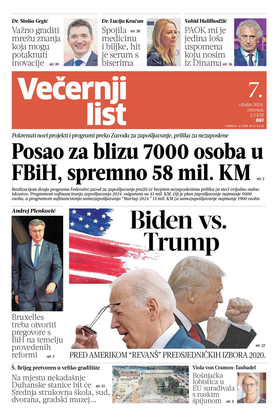 Pročitajte što vam ovog četvrtka donosi Večernji list BiH