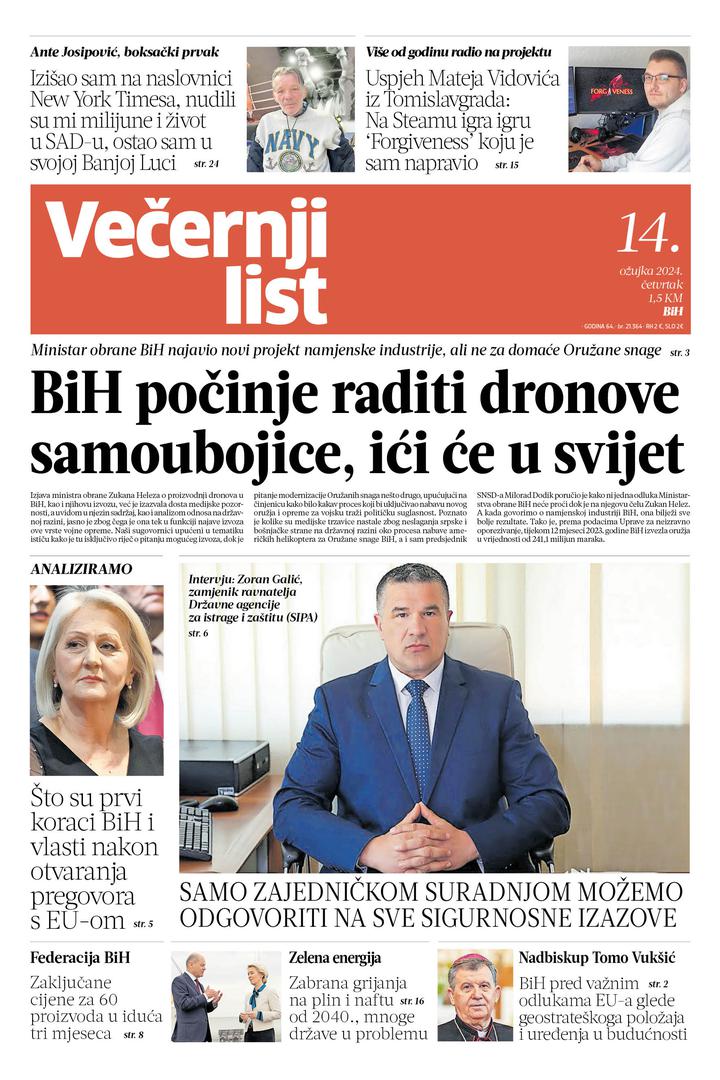 Pročitajte što vam ovog četvrtka donosi Večernji list BiH