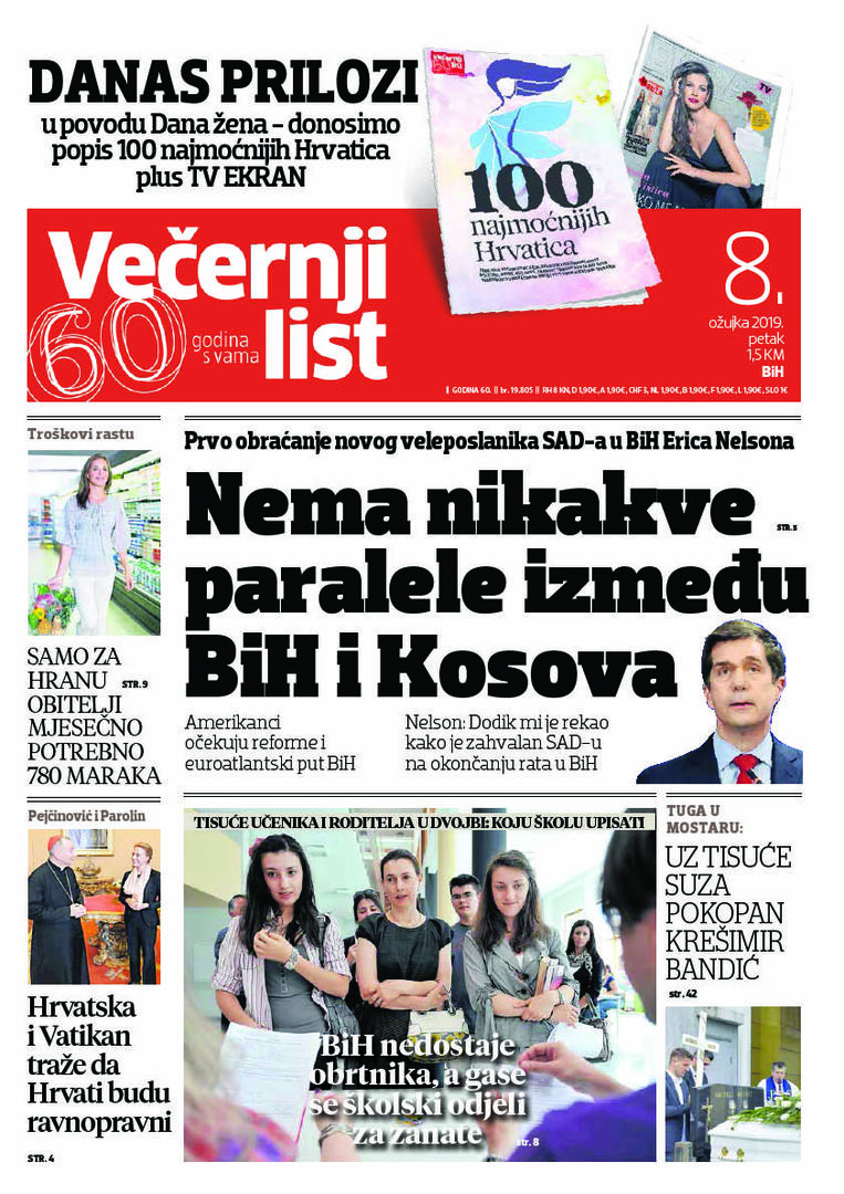 U Večernjem listu BiH u tiskanom izdanju u petak, 8. ožujka 2019. godine čitajte: