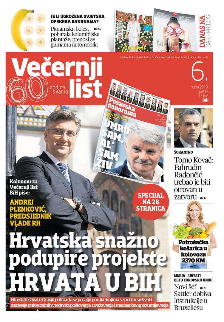 U Večernjem listu BiH u tiskanom izdanju u petak, 6. rujna 2019. godine pročitajte: