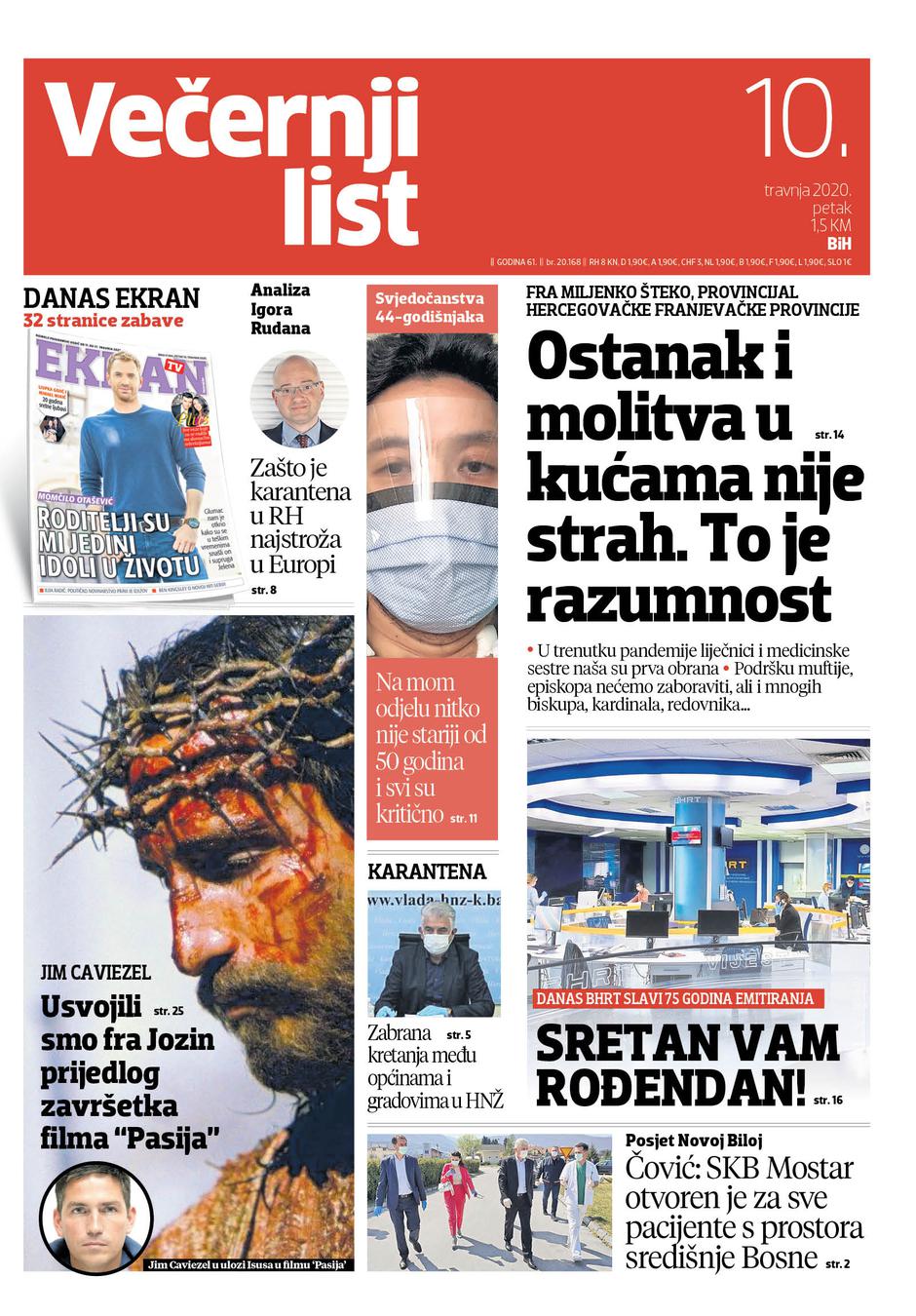U Večernjem listu BiH u tiskanom izdanju u petak, 10. travnja 2020. godine pročitajte: