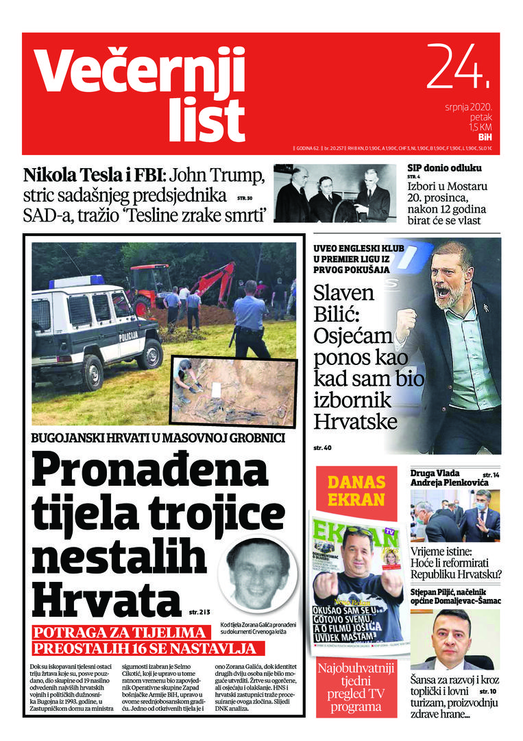 U Večernjem listu BiH u tiskanom izdanju u petak, 24. srpnja 2020. godine pročitajte: