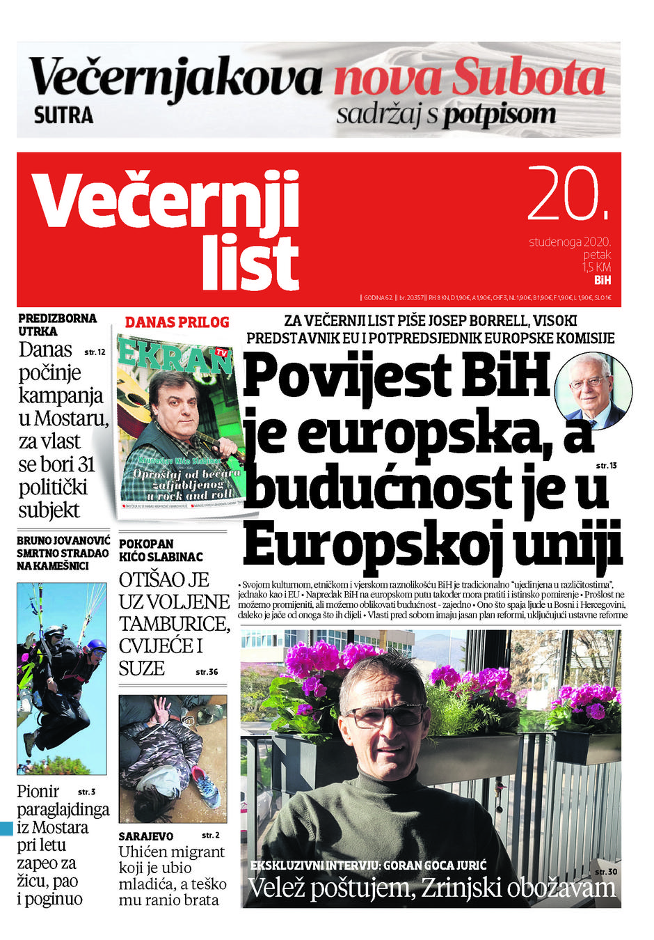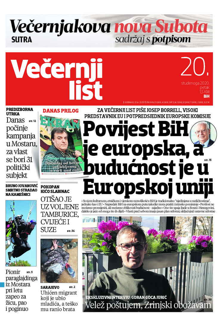 U Večernjem listu BiH u tiskanom izdanju u petak, 20. studenoga 2020. godine pročitajte: