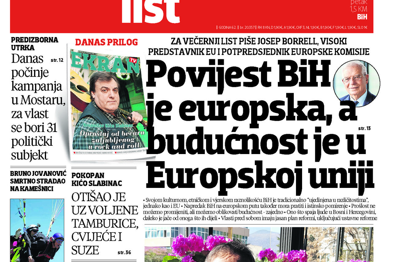 - Za Večernji list piše Josep Borreli: Povijest BiH je europska, a budućnost je u Europskoj uniji