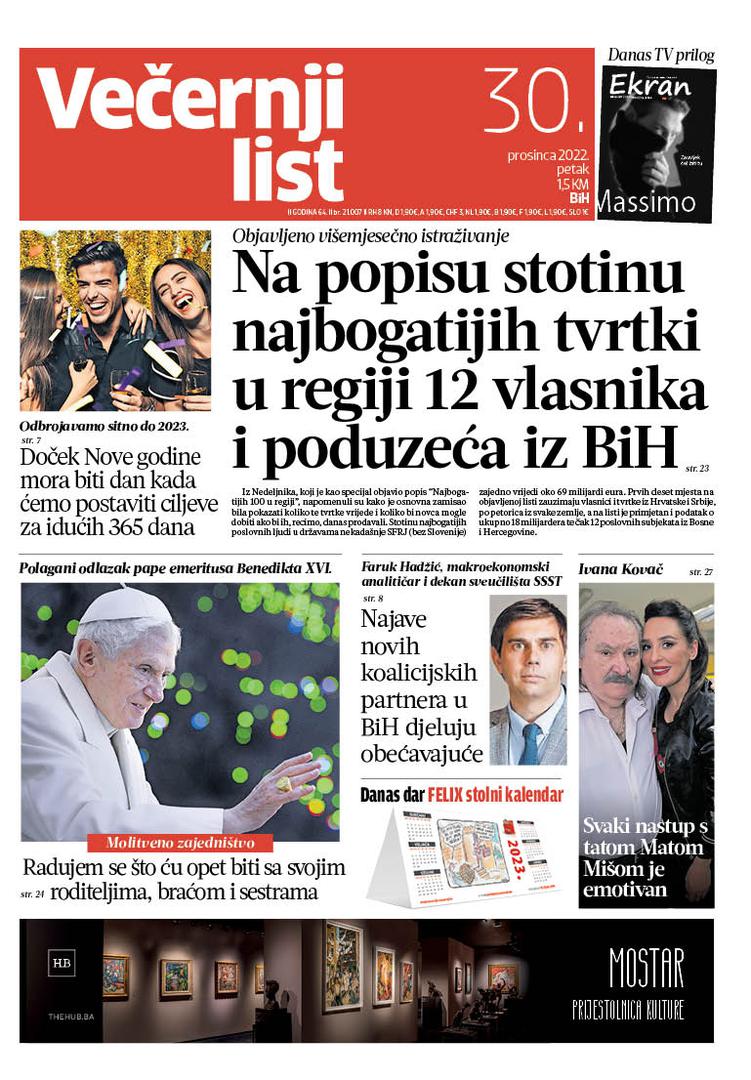 U Večernjem listu BiH u tiskanom izdanju u petak, 30. prosinca 2022. godine pročitajte: