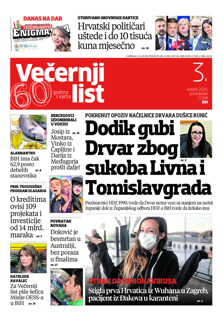 U Večernjem listu BiH u tiskanom izdanju u ponedjeljak, 3. veljače 2020. godine pročitajte: