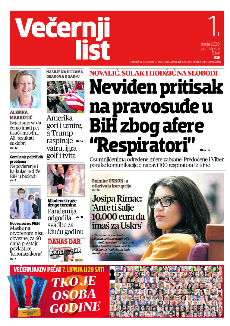 U Večernjem listu BiH u tiskanom izdanju u ponedjeljak, 1. lipnja 2020. godine pročitajte:
