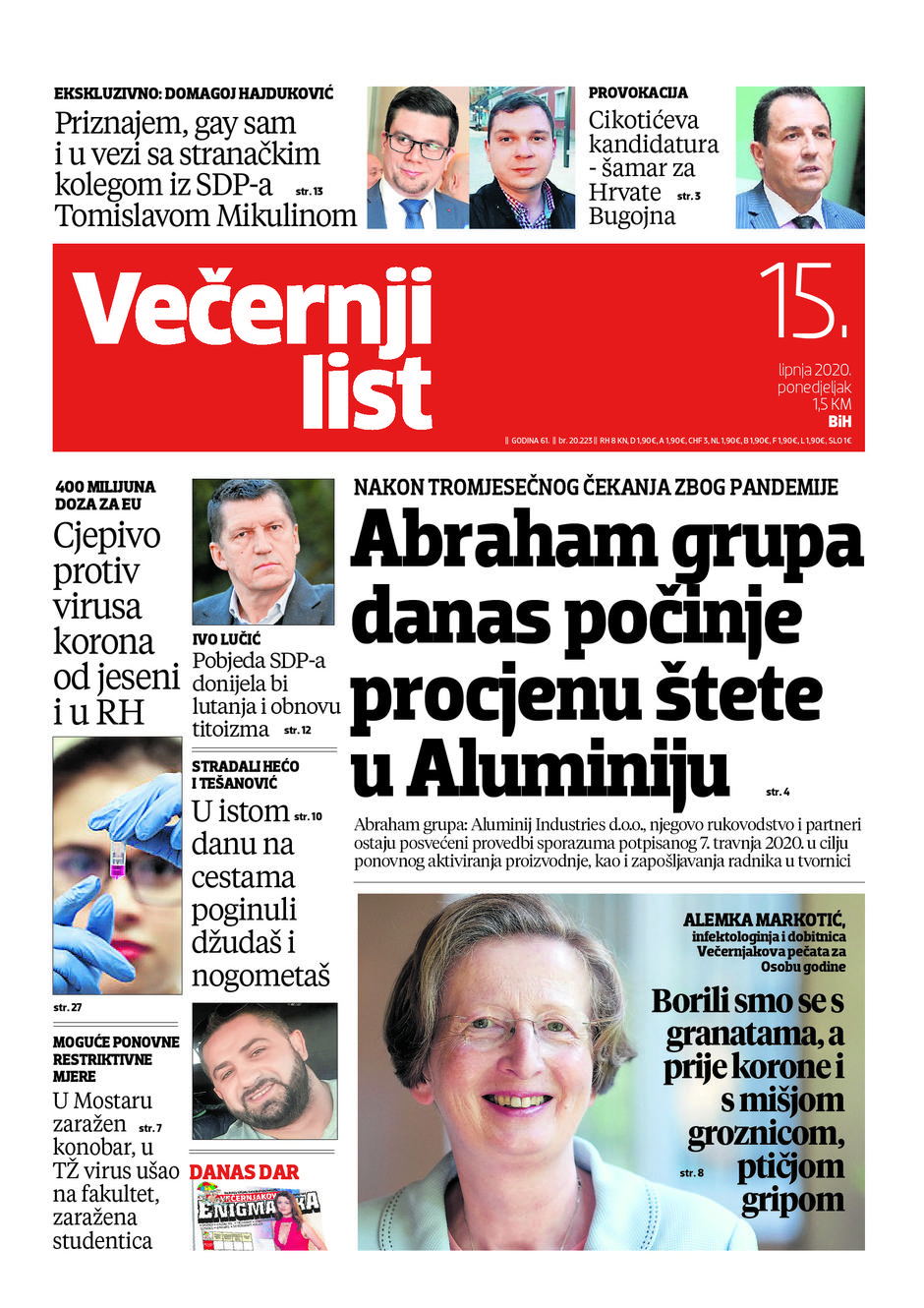 U Večernjem listu BiH u tiskanom izdanju u ponedjeljak, 15. lipnja 2020. godine pročitajte: