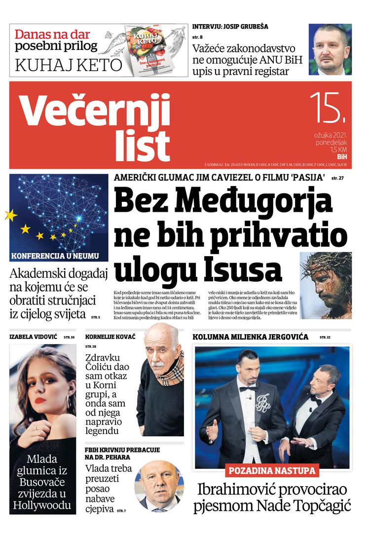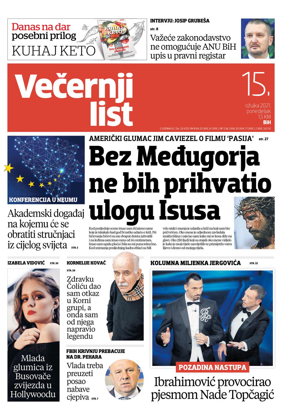 U Večernjem listu BiH u tiskanom izdanju u ponedjeljak, 15. ožujka 2021. godine pročitajte: