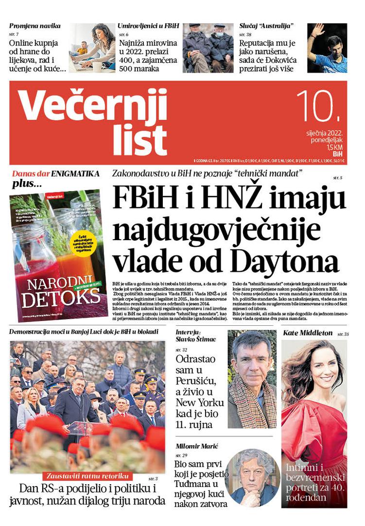 U Večernjem listu BiH u tiskanom izdanju u ponedjeljak, 10. siječnja 2022. godine pročitajte: