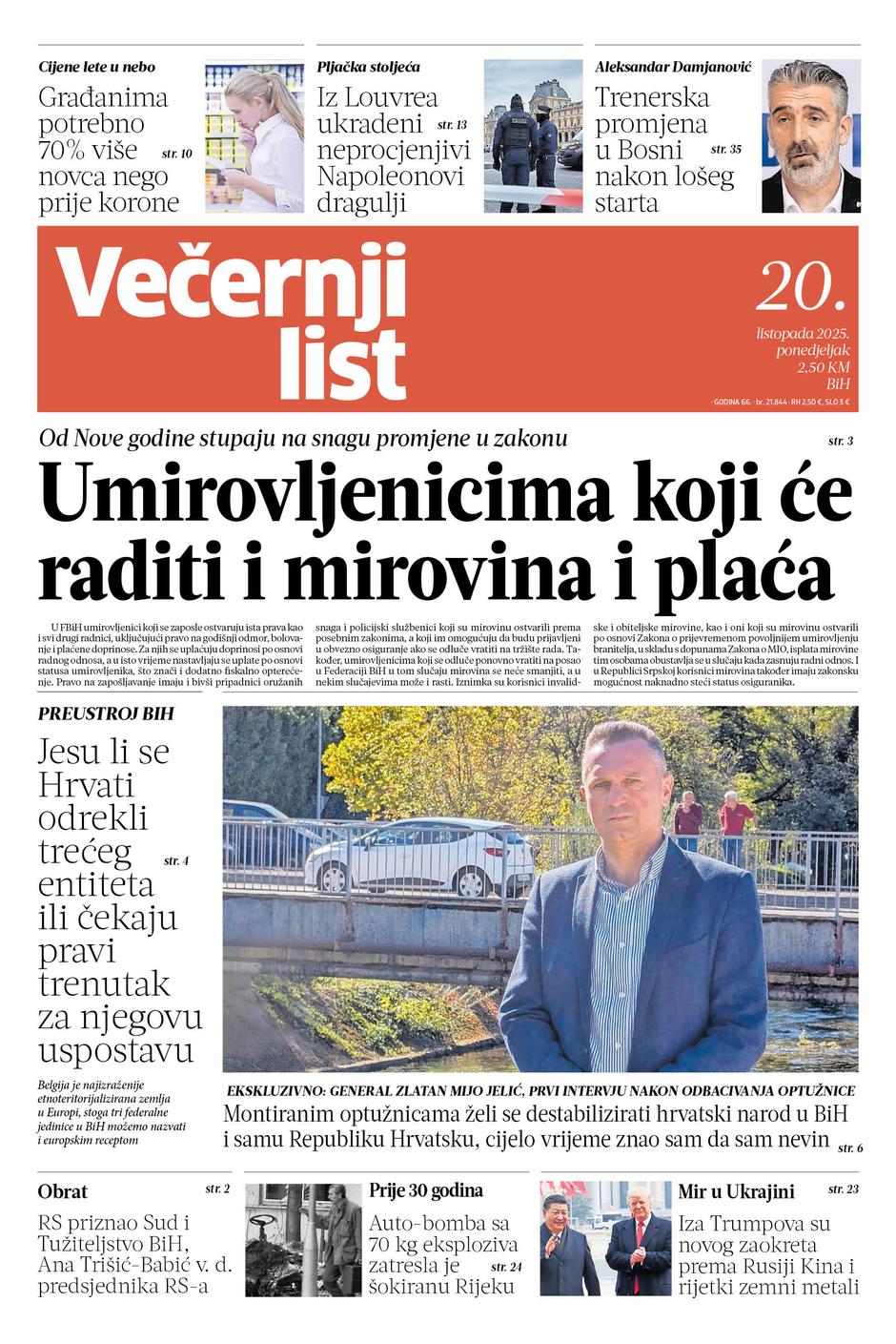 U Večernjem listu BiH u tiskanom izdanju u ponedjeljak, 20. listopada 2025. godine pročitajte: