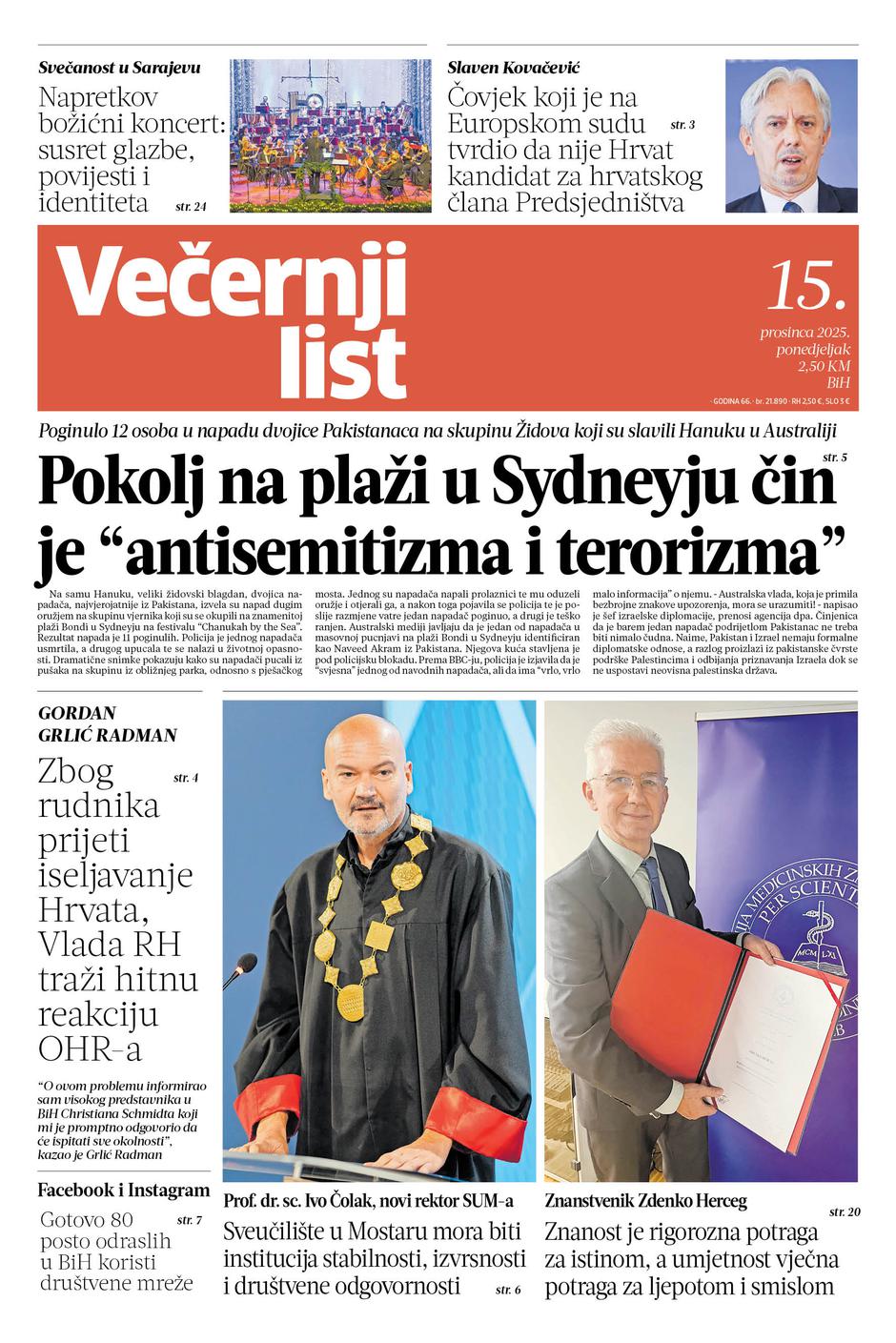 U Večernjem listu BiH u tiskanom izdanju u ponedjeljak, 15. prosinca 2025. godine pročitajte: