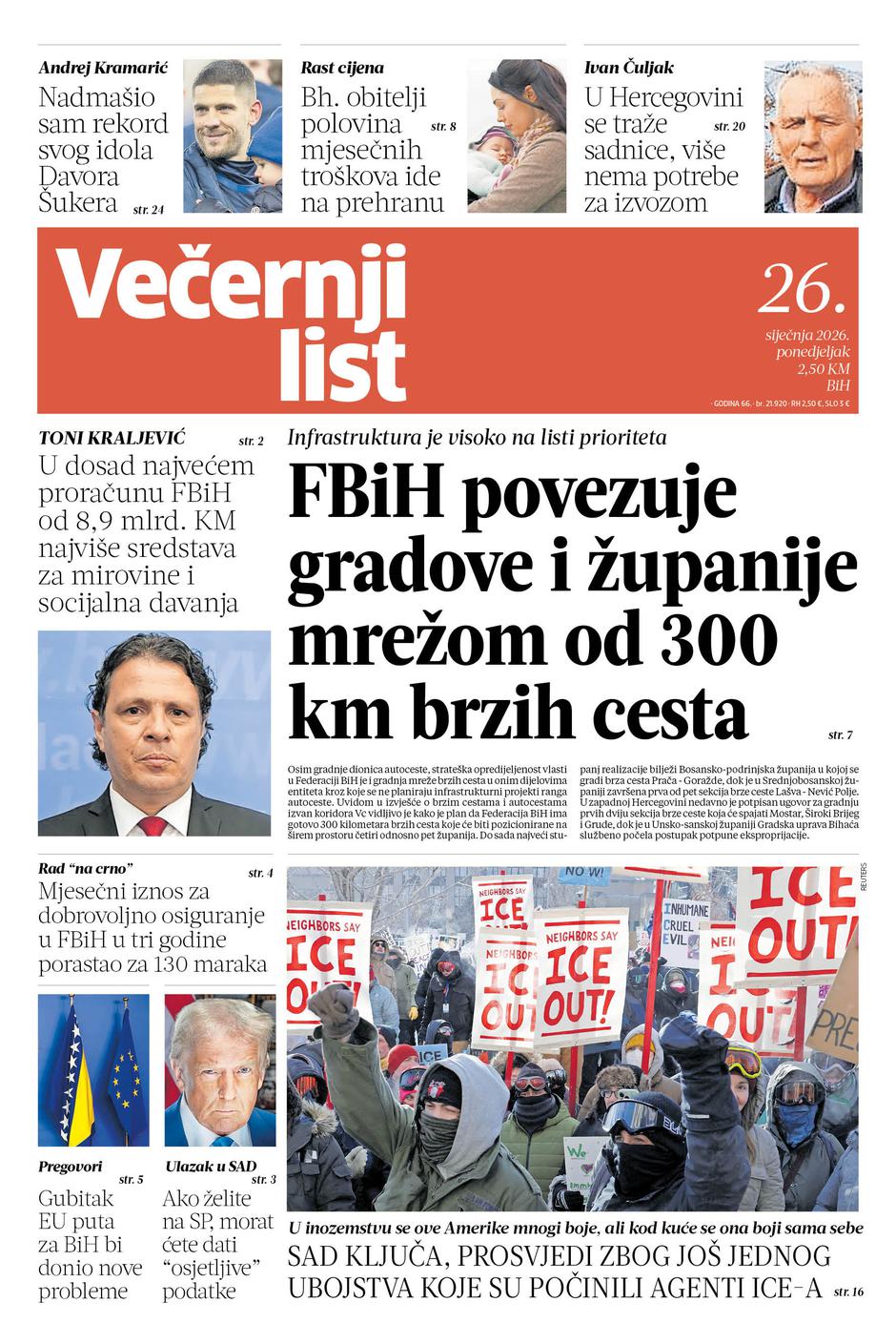 Pročitajte što vam ovog ponedjeljka donosi Večernji list BiH