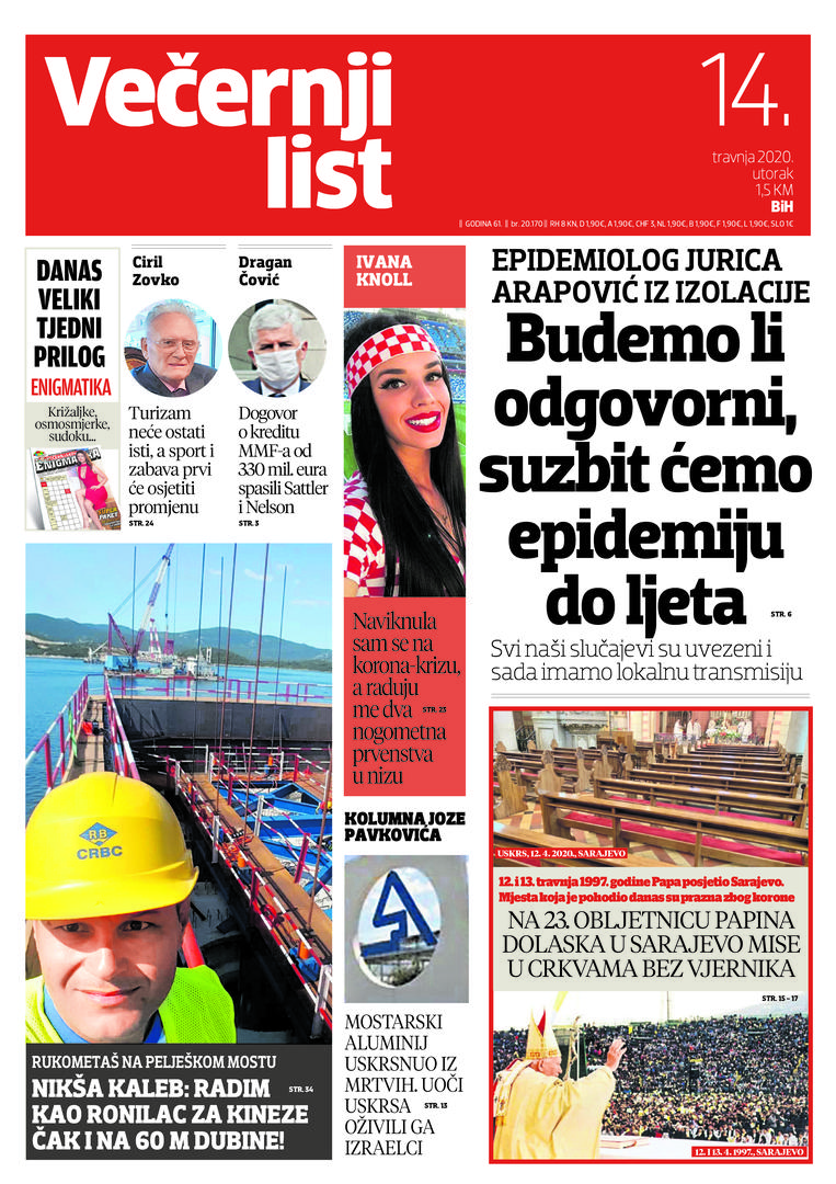 U Večernjem listu BiH u tiskanom izdanju u utorak, 14. travnja 2020. godine pročitajte: