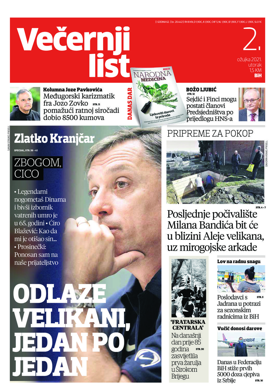 U Večernjem listu BiH u tiskanom izdanju u utorak, 2. ožujka 2021. godine pročitajte: