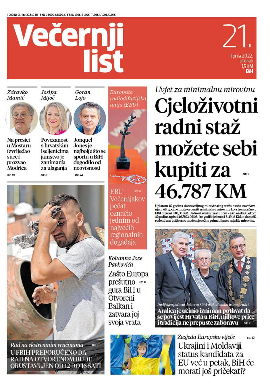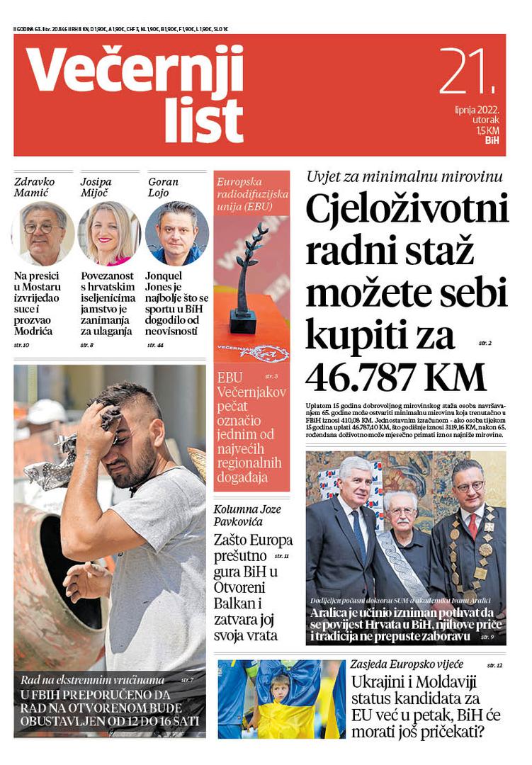 U Večernjem listu BiH u tiskanom izdanju u utorak, 21. lipnja 2022. godine pročitajte: