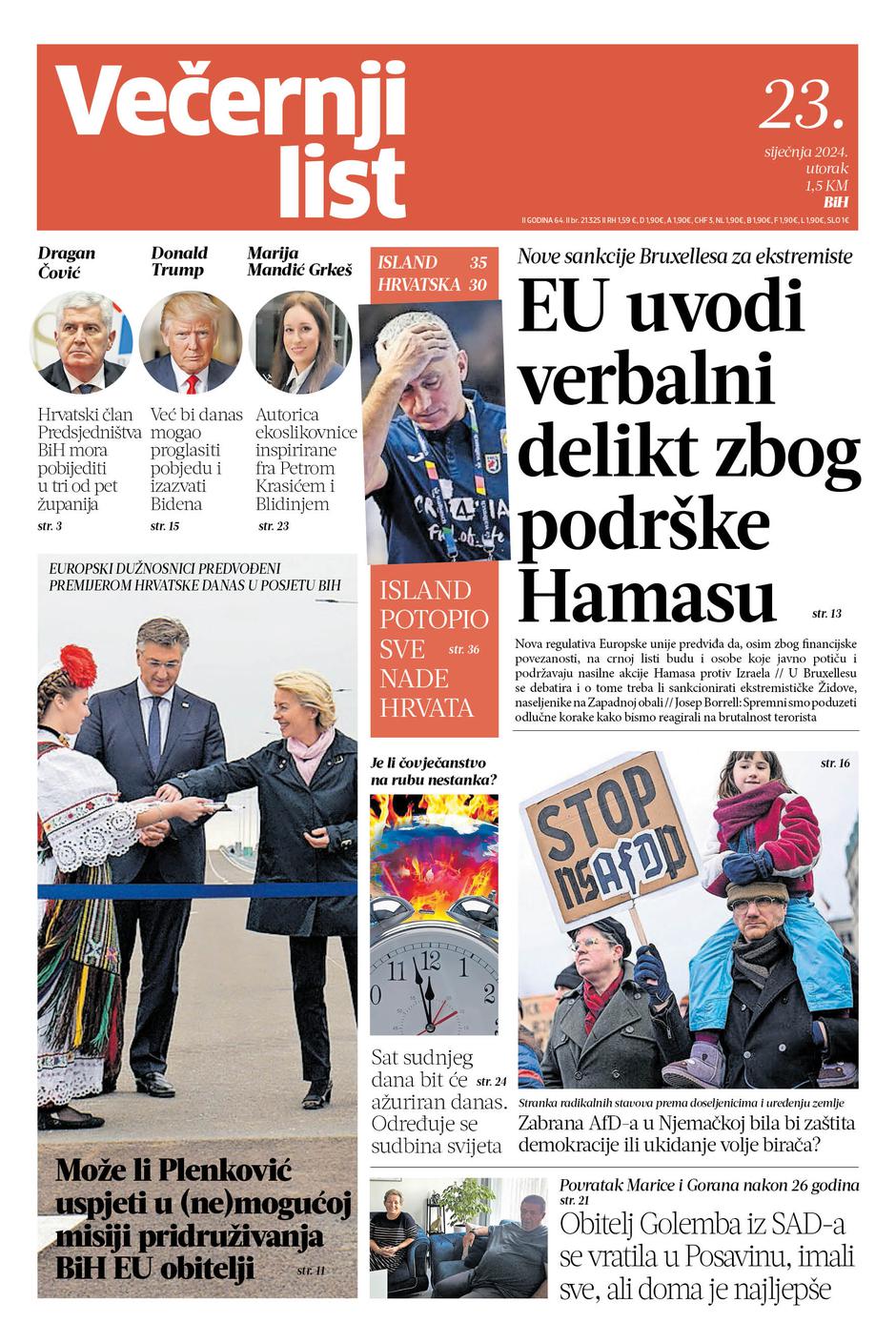 U Večernjem listu BiH u tiskanom izdanju u utorak, 23. siječnja 2024. godine pročitajte...